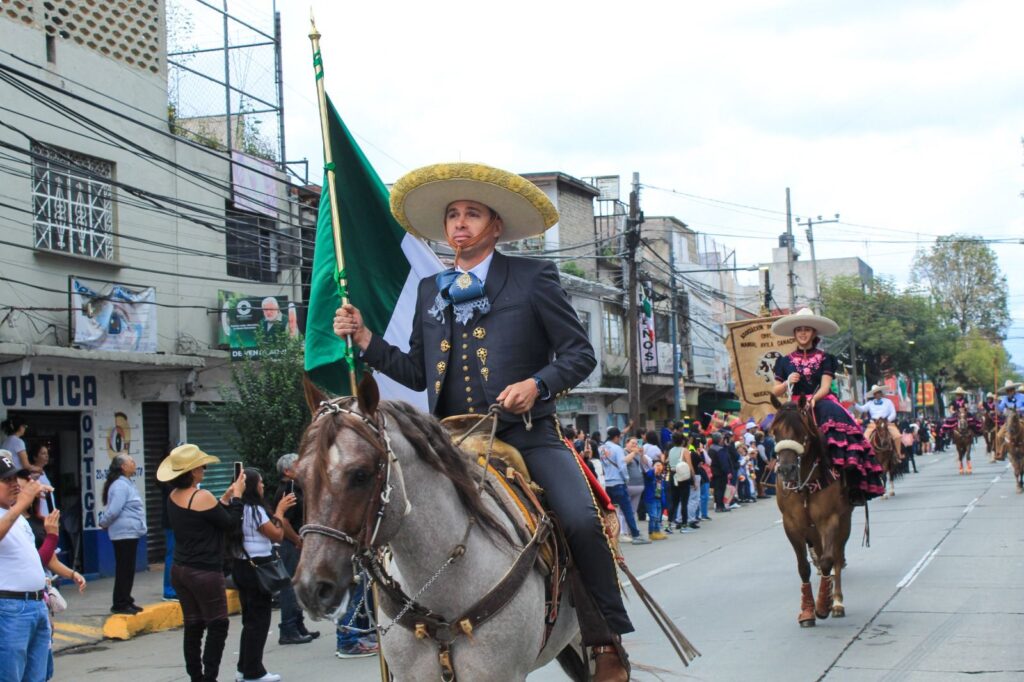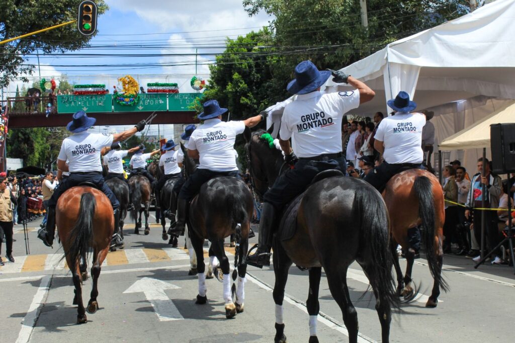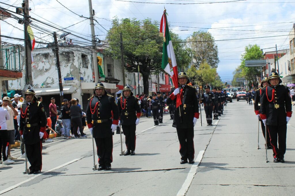 Sobre la avenida Gustavo Baz se vivió un ambiente festivo y colorido durante el desfile, colmado de aplausos, en el que llamaron especialmente la atención, los binomios K9, Unidad Canina entrenada para detectar explosivos y sustancias prohibidas, entre otras de sus tareas.