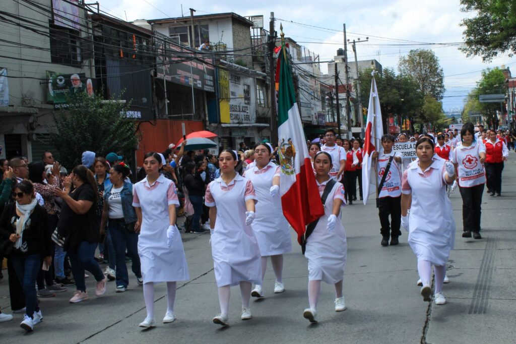 - Diversos contingentes marcharon por la avenida Gustavo Baz en conmemoración de los 215 años del inicio de la Independencia de México.