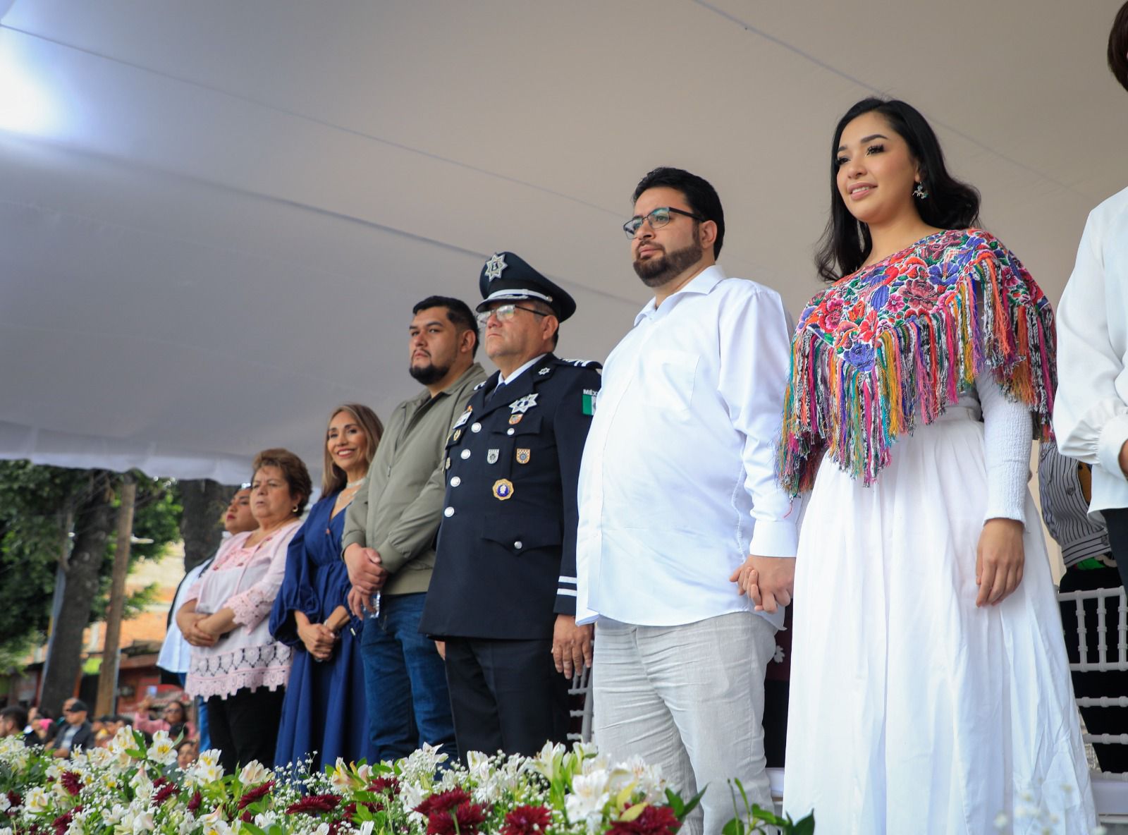 Desde el templete principal, el alcalde, Isaac Montoya, acompañado de su esposa, miembros del Cabildo y diversos directores de la administración municipal, saludaron a todos los contingentes, como a los del Grupo Montado y la Asociación de Charros Manuel Ávila Camacho, que dieron el toque de mexicanidad al desfile, acto que fue aplaudido por el público asistente.