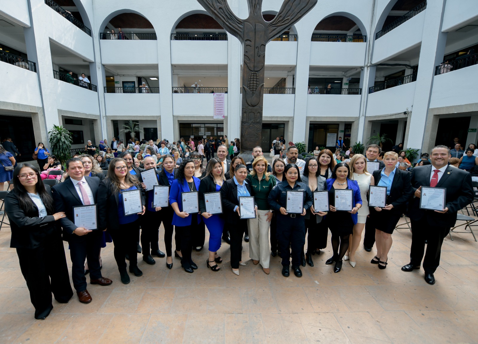 La Presidenta Honoraria del DIF Municipal, Paty Arévalo, entregó certificaciones en el Estándar de Competencia EC0539 “Atención presencial de primer contacto a mujeres víctimas de violencia de género” a 21 servidores públicos, quienes ya cuentan con las herramientas y conocimientos para brindar una atención oportuna ante situaciones de violencia de género.