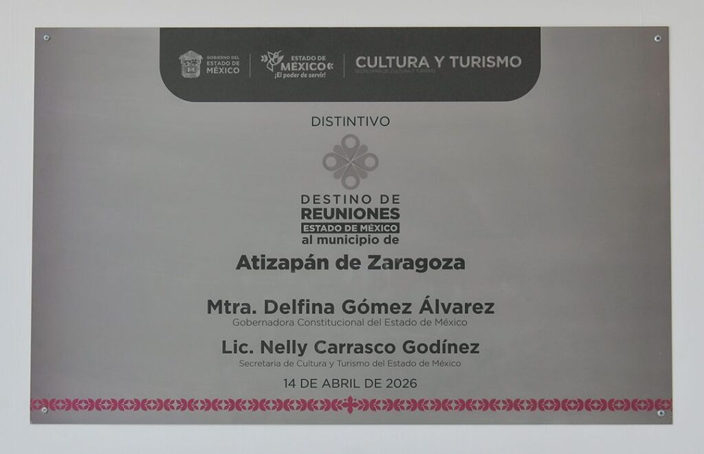 El Alcalde Pedro Rodríguez y la Secretaria de Cultura y Turismo del Estado de México, Nelly Carrasco Godínez, develaron la placa conmemorativa que distingue a Atizapán de Zaragoza como “Destino de Reuniones Estado de México”, consolidando a este municipio como un territorio idóneo para la realización de reuniones empresariales de carácter nacional.