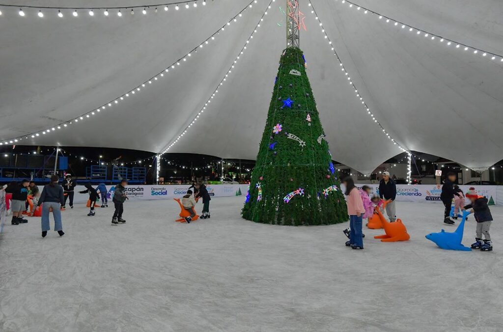 En tanto, la pista de hielo está abierta para personas de todas las edades, en un horario de lunes a domingo de las 11:00 a las 14:00 horas y de las 16:00 a las 21:00 horas; mientras que la Villa Navideña ofrece distintas actividades para las pequeñas y pequeños, además de que se presentan obras de teatro y se cuenta con la presencia de personajes tradicionales de esta temporada para la fotografía del recuerdo, todo sin costo alguno.