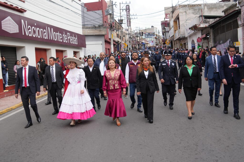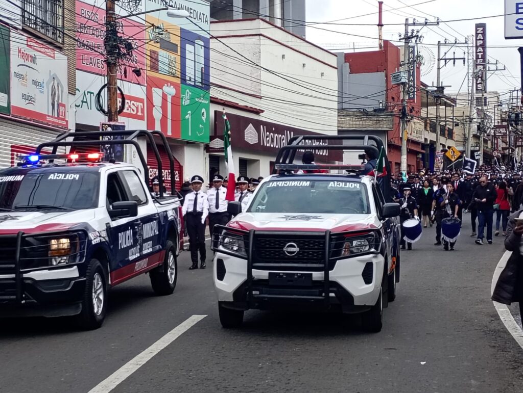 En el desfile participaron 49 instituciones educativas, 15 áreas del gobierno municipal, tres organismos públicos descentralizados, integrantes del Suteym de Nicolás Romero, contingentes de agrupaciones políticas y sociales, 21 vehículos de la administración, entre camiones de volteo, vactor, retroexcavadora, ambulancias y un camión de bomberos.
