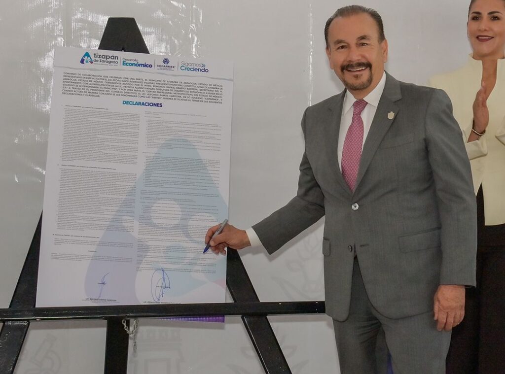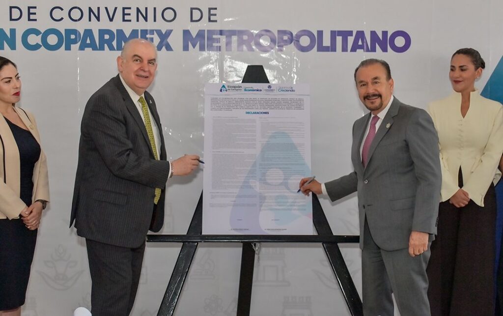 El Alcalde Pedro Rodríguez firmó un convenio de colaboración con COPARMEX Metropolitano del Estado de México, el cual permitirá consolidar a Atizapán como uno de los mejores municipios del país para invertir y hacer crecer la industria, lo que se traducirá en más oportunidades para las y los atizapenses.