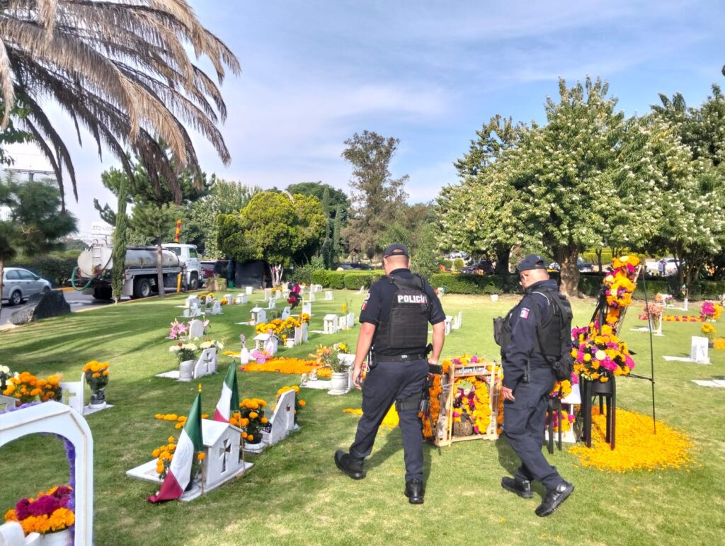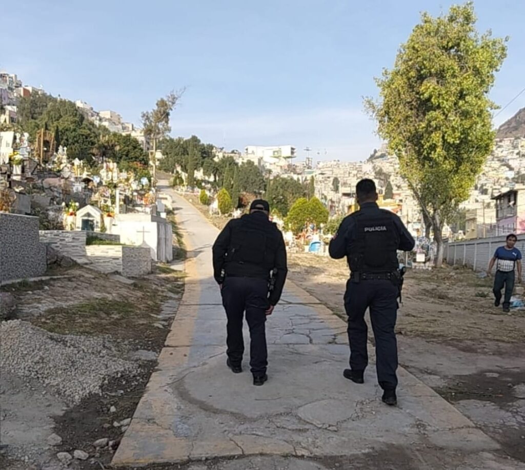 Este domingo, la Comisaría General de Proximidad y Seguridad Ciudadana de Tlalnepantla desplegó un operativo en los panteones ubicados en el territorio municipal en comunidades como Santa María Tlayacampa, Jorge Jiménez Cantú, Lázaro Cárdenas, San Juan Ixhuatepec, San Andrés Atenco, San Jerónimo, Xocoyahualco, San Pablo Xalapa, entre otras.